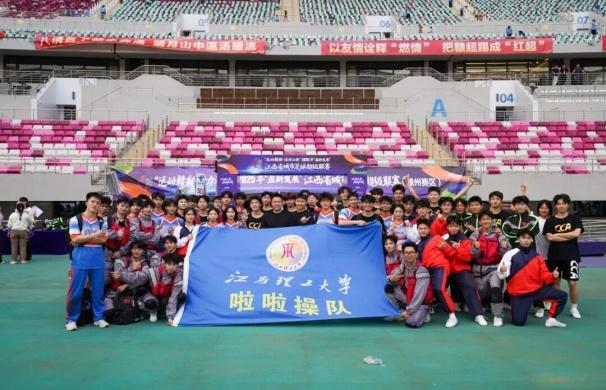 11 月 2 日晚,在 2025 年江西省城市足球超级联赛决赛中,赣州队主场迎战宜春队。最终,赣州队 3:0 夺冠。在 2025 年全国啦啦操冠军赛中斩获四金一银的江西理工大学啦啦操队通过一曲《为赣而战》成为赣超决赛舞台上最燃的火焰,他们用蓬勃的朝气和自信的笑容,为紧张的赛事注入靓丽的青春气息,充分展现了我校学子昂扬向上的精神风貌。