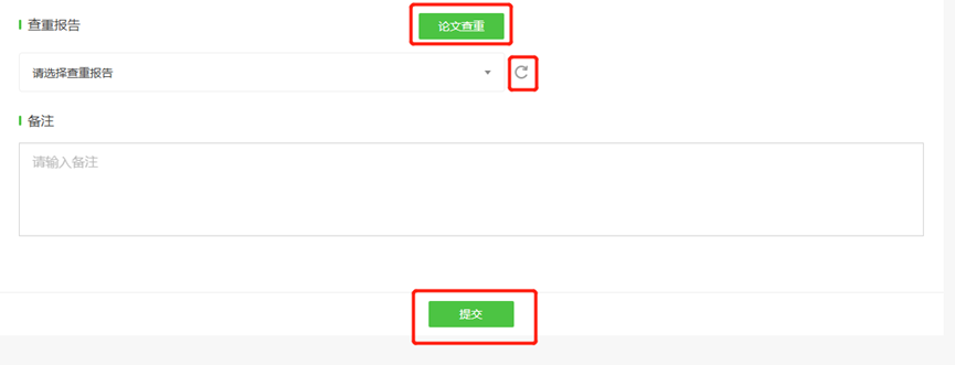 返回提交页面,点图示刷新按钮,选择最新查重率,点最下方绿色提交按钮。