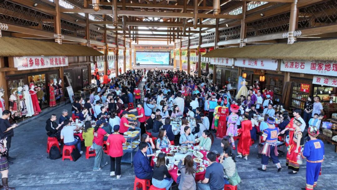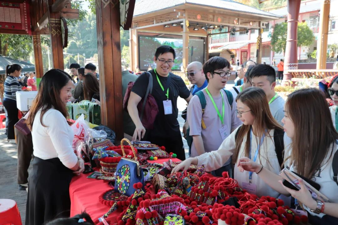 在瑶族特色长桌宴上,交流团成员一边品尝当地独具风味的特色美食,一边欣赏精彩的瑶族文化展演;现场还设有丰富的农特产品展销区,琳琅满目的地方特产吸引了香港社工朋友们驻足了解。这些生动的体验让香港同胞对乳源当地民俗文化有了更直观的感受。