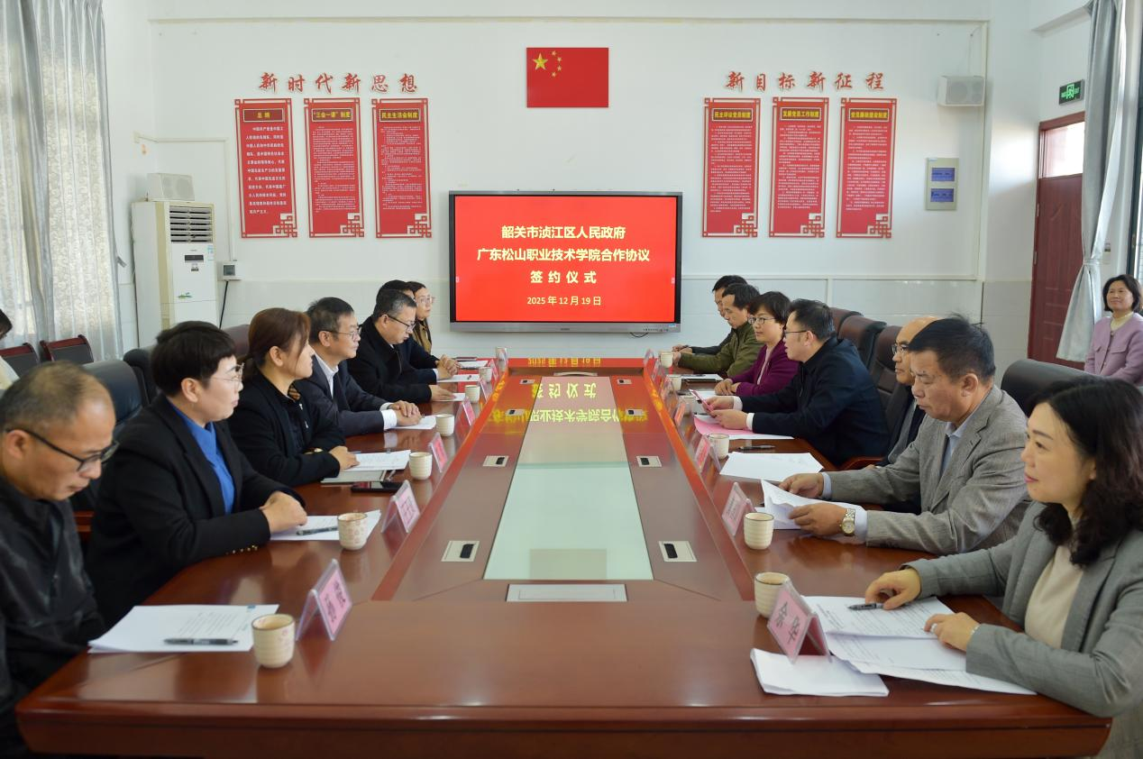 12月19日上午,广东松山职业技术学院与韶关市浈江区人民政府合作办学签约暨广东松山职业技术学院附属小学揭牌仪式在浈江区黄金村中心小学举行。此次合作是双方深入贯彻落实“百县千镇万村高质量发展工程”和“双百行动”部署,推动高等教育资源下沉、赋能基础教育提质增效的重要举措,标志着校地协同育人模式迈入新阶段。