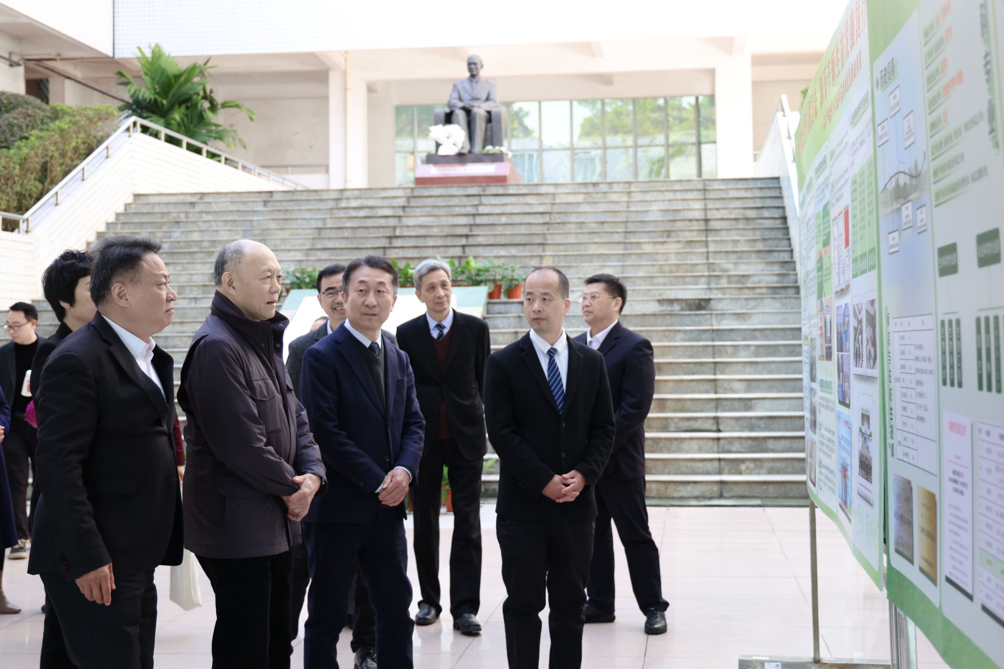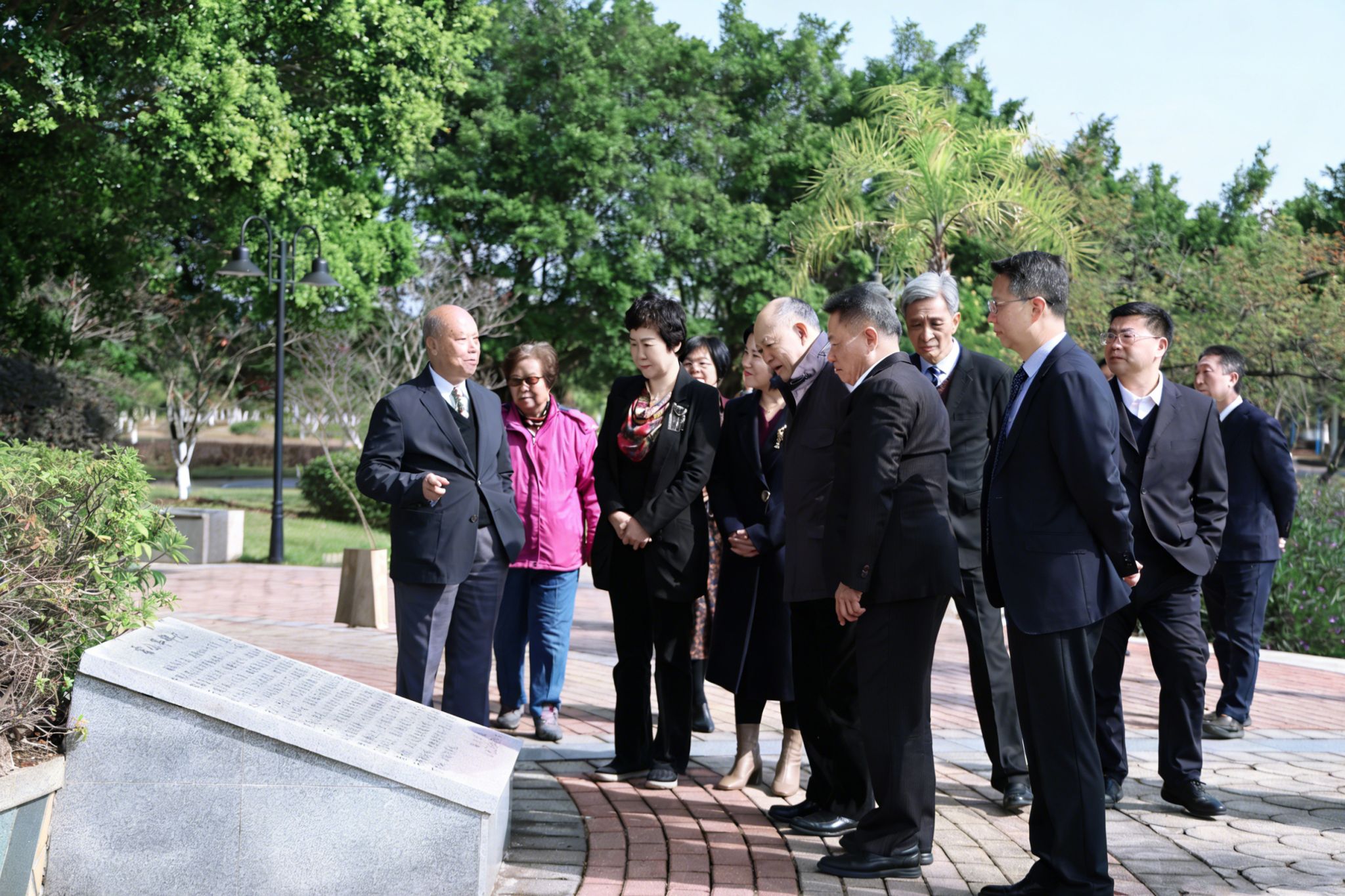 在霍英东先生铜像前,霍震寰与众人驻足凝视、献花缅怀,追思霍英东先生爱国兴学、造福桑梓的崇高情怀。