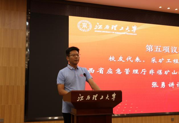采矿工程2005届校友、江西省应急管理厅考核巡查处处长张勇讲述了自己与江理和采矿专业的不解之缘。他从“和尚班”的趣事谈到熄灯后的“卧谈会”,从篮球场上的汗水联想到合唱比赛的荣光,深情诠释了“志存高远、责任为先”的校训精神如何在二十年时光中沉淀为责任与担当。他表示,岁月改变了容颜,却从未带走心中的赤子情怀,也从未改变纯洁的兄弟情与师生情。