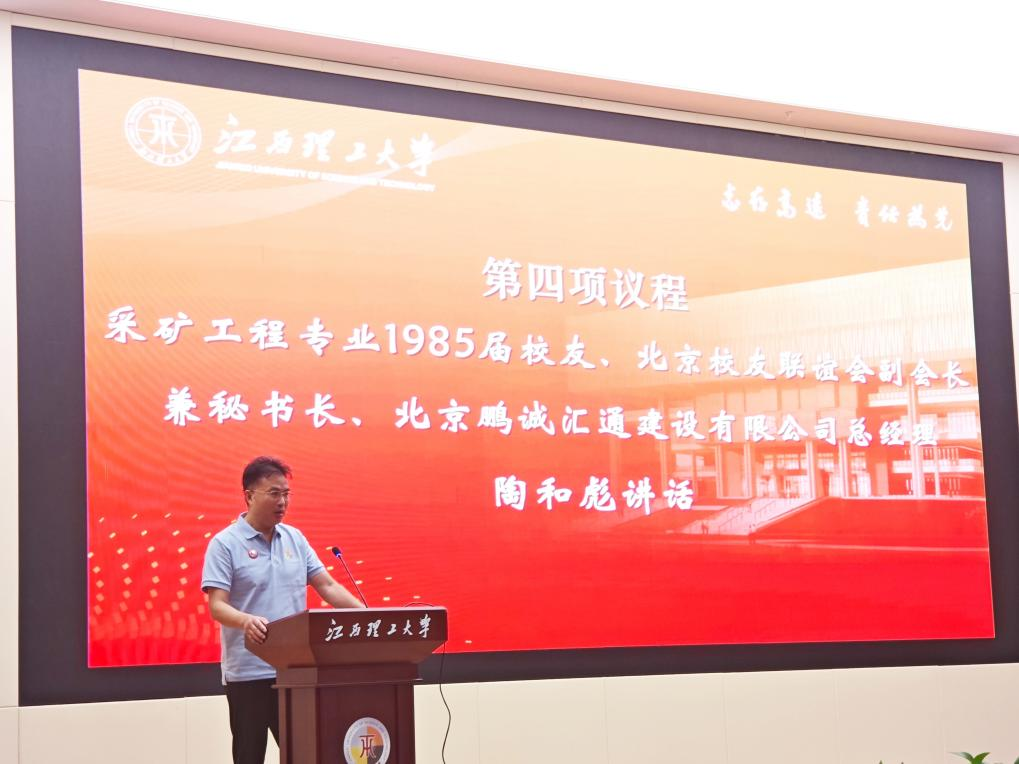 采矿工程专业1985届校友、北京校友联谊会副会长兼秘书长、北京鹏诚汇通建设有限公司总经理陶和彪代表1985届全体校友,向母校的悉心培养表示衷心感谢,他深情回顾了40年前在母校求学、奠定人生基石的难忘岁月,并寄语同窗好友们珍视情谊、保重身体,以从容心态开启人生新阶段。他表示,作为北京校友联谊会的其中一员,有幸参与母校的建设发展感到十分深感荣幸,祝愿福母校明天更美好。