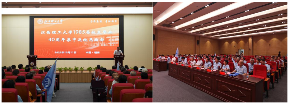 日期:2025年10月12日江西理工大学网讯 10月11日上午,我校在三江校区(东园)志远会议中心2号厅举行1985届校友毕业40周年集中返校见面会。校党委常委、副校长董冰岩,校原副校长、校友会副会长邱廷省、龚姚腾出席会议。来自采矿工程、选矿工程、矿山机械、冶金机械、工业电气自动化、有色金属冶金等6个专业百余位校友,以及冶金工程学院、矿业工程学院、机电工程学院、电气工程与自动化学院等单位负责人参加会议。见面会由国内合作促进中心主任、校友会秘书长许洪胤主持。