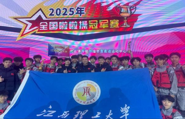 11 月 2 日晚,在 2025 年江西省城市足球超级联赛决赛中,赣州队主场迎战宜春队。最终,赣州队 3:0 夺冠。在 2025 年全国啦啦操冠军赛中斩获四金一银的江西理工大学啦啦操队通过一曲《为赣而战》成为赣超决赛舞台上最燃的火焰,他们用蓬勃的朝气和自信的笑容,为紧张的赛事注入靓丽的青春气息,充分展现了我校学子昂扬向上的精神风貌。