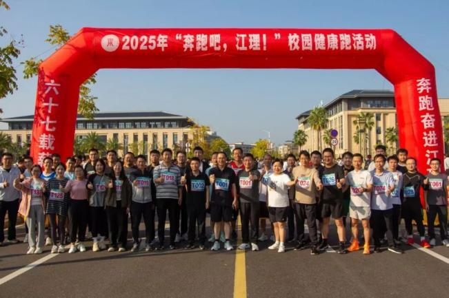 11 月 1 日,在建校 67 周年之际,我校在三江校区(东园)举办“奔跑吧江理”校园健康跑活动。校党委书记刘祖文出席活动并鸣枪发令,校党委副书记徐志峰,副校长汪航,校党委常委、副校长宁洁,校党委常委、党委宣传部部长盛晓明,校党委常委、党委统战部部长汪锋锁出席并参加活动。701 名师生与校友代表齐聚校园、共同参与,用奔跑致敬校庆、传递青春活力。