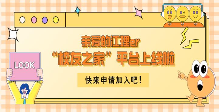 亲爱的校友,为更好地联络、服务校友,凝聚“江理人”的力量,江西理工大学校友之家平台已正式上线。在这里,您可以找到昔日同窗;在这里,您可以获取母校资讯;在这里,您可以进行返校预约;在这里,您可以参加联谊活动。期待您的加入!