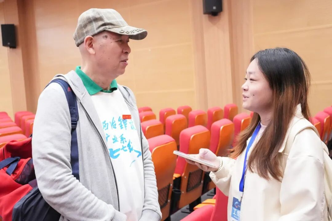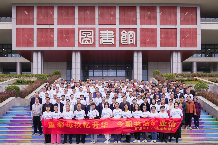 重回校园,八角塘、采矿楼、体育场这些老建筑,依旧是校友们心中最鲜明的符号。阔别多年的校友们相拥问候,鬓角的风霜难掩眼中的热忱,一句句“老同学,好久不见”瞬间拉近距离。他们身着统一纪念衫,在图书馆前整齐列队,镜头定格下这跨越数十载的重逢瞬间。