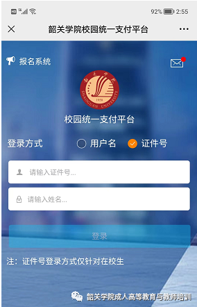 首页>> 教务公告教学>>韶关学院成教2023缴费操作流程注册指引(网络在线方式)统一支付平台缴费
