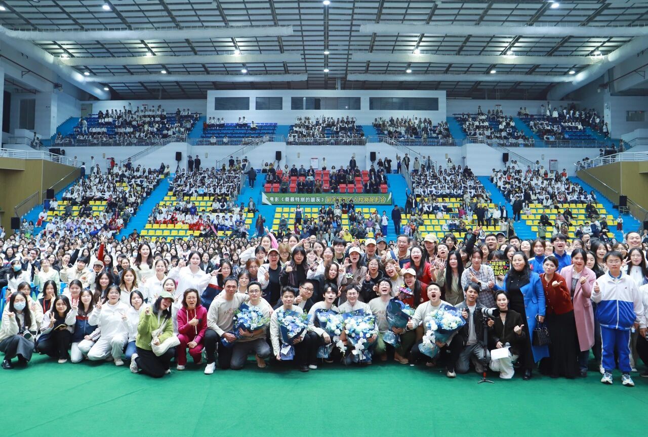 韶关学院网讯:一场千人之约, 一份温暖共鸣。12月1日晚,电影《我最特别的朋友》韶关学院师生千人特别观影交流活动在知行区体育馆举行。韶关学院特聘教授、著名演员张颂文携导演王晓丰,领衔主演曾柯琅,副导演杨洋,摄影指导王韬,联合制片人池清波,联合出品人黄佳杰等主创团队来到韶院,与2600余名师生共同参与了一场充满温情的特别观影交流活动。这不仅是一场光影艺术的盛宴,也是一场承诺的兑现,更是提升师生多维素质的“第二课堂”。