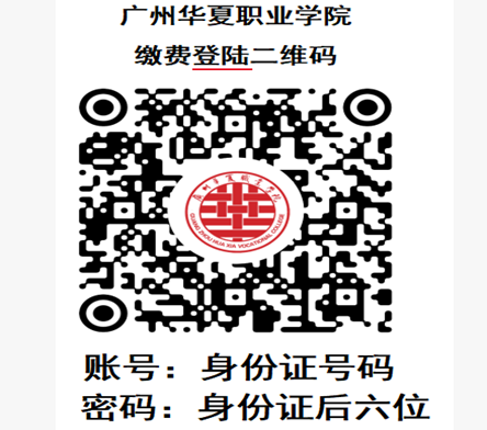 2.缴费方式:学校通过支付宝/微信缴纳学杂费的方式,方便快捷。具体操作方法:打支付宝/微信“扫一扫”广州华夏职业学院缴费登录二维码,输入学生身份证号码及密码(身份证后六位)登录校园统一支付平台,核对缴费信息后进行缴费。