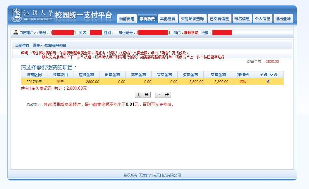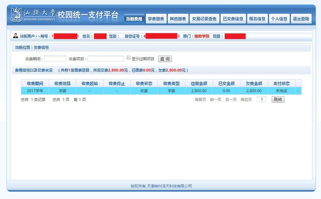 汕头大学校园统一支付平台缴费指引