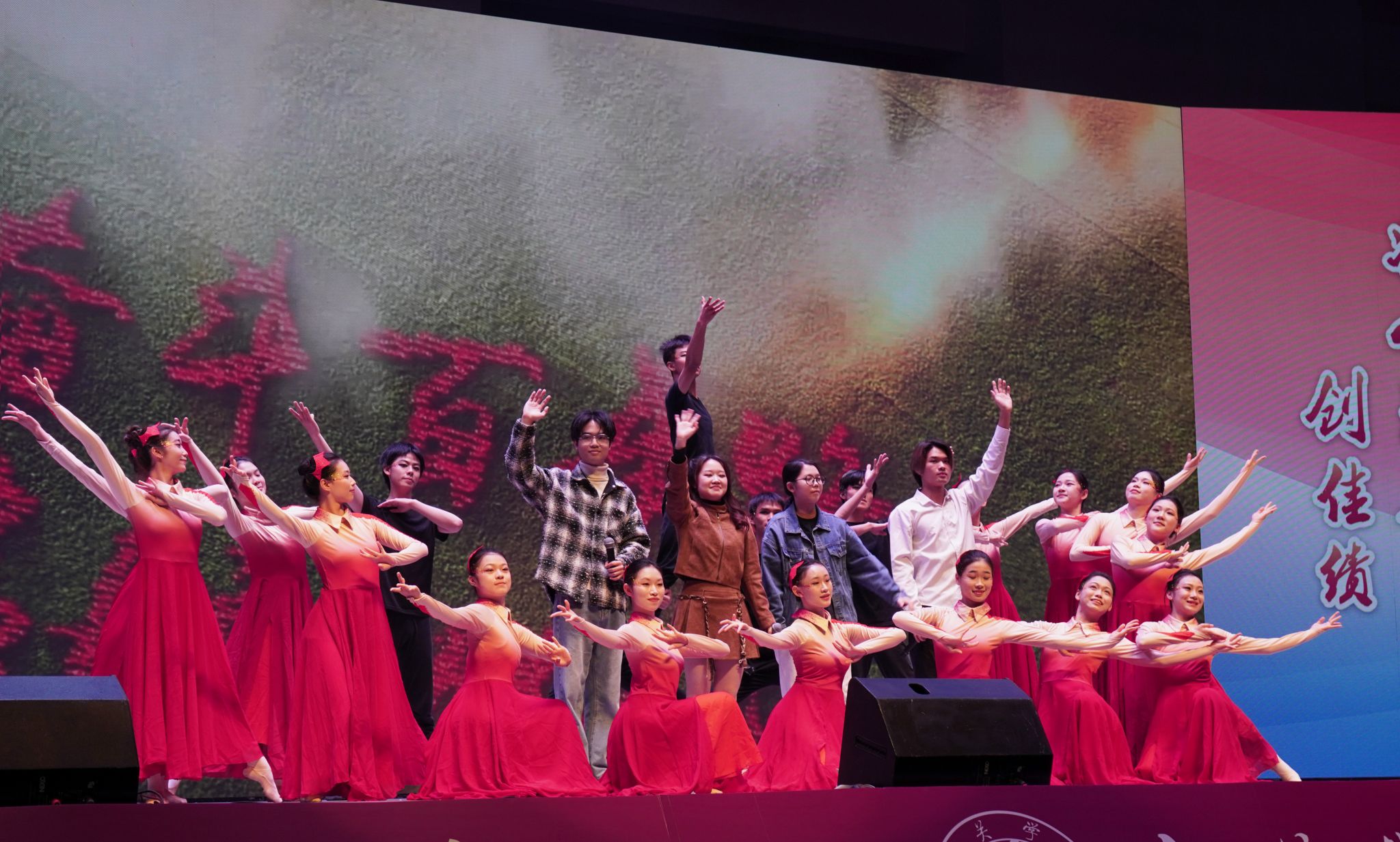 此外,诗朗诵《百年韶院·认证荣光》、古筝《将军令》、舞蹈《上春山》、歌伴舞《强国一代有我在》等节目轮番登场,既展现了韶院师生的精神风貌,也传递出“爱校荣校”的深厚情怀。晚会最后,全场共同唱响《明天会更好》,美好的祝福在每个人心中传递。韶院人满怀憧憬与希望迎接2026年的到来。