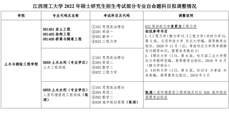 江西理工大学2022年硕士研究生招生考试部分专业自命题科目拟调整情况