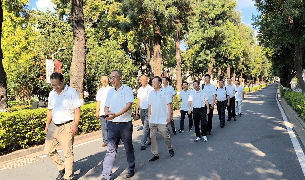 青春大道、育才路上,钟志坚、杨钱江、罗肆安、谭盛权、翟永维、江丽、龚江蓉、荆强、张国军、袁晚根、康维星、刘守圣、张晶、罗芸、刘显晖、凌达峰、肖永荣、李东儒、付庆华等一行谈笑风生。