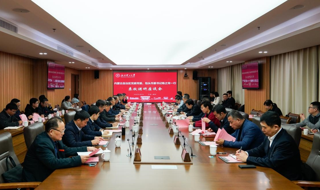 3月9日下午,内蒙古自治区党委常委、包头市委书记陈之常一行来校调研。双方就深化合作对接,共同推动稀土产业高质量发展进行了座谈交流。内蒙古自治区科技厅厅长张文韬,包头市委常委、秘书长盖连玉,包头市政府副市长金永丽,包头市稀土高新区党工委书记高勇,包钢(集团)党委常委、副总经理、北方稀土党委书记、董事长刘培勋,江西省科技厅党组成员、副厅长陈金桥,赣州市委常委、副市长何琦,我校党委书记刘祖文,中国工程院院士、校长葛世荣等出席座谈会。座谈会由刘祖文主持。江西省科技厅、赣州市相关部门负责人,校领导徐志峰、董冰岩、汪航及相关部门、学部负责人参加调研座谈。