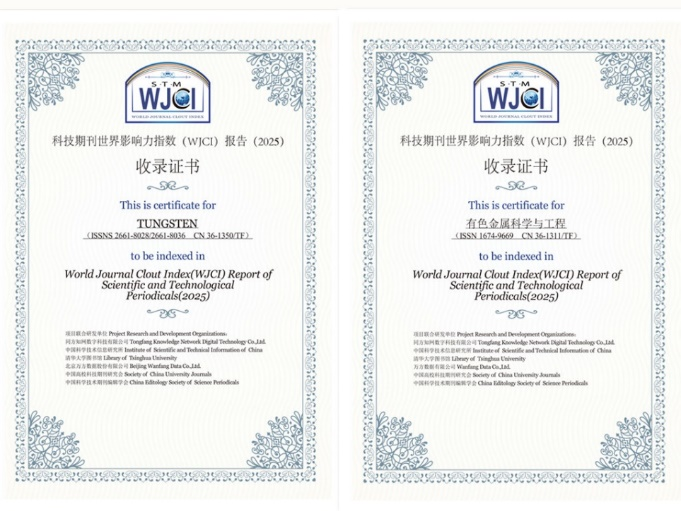 近日,《科技期刊世界影响力指数(WJCI)报告(2025版)》(简称《WJCI报告》)正式发布,这份由中国科学技术信息研究所、清华大学图书馆等六大权威机构联合研制的国际期刊评价报告,是全球科技期刊同台竞技的重要标尺。我校主办的《钨科技(英文)》《有色金属科学与工程》再度双双强势入选,且两刊排名、分区均实现跨越式提升,核心影响力再攀新高峰,彰显我校在相关优势学科领域的期刊办刊实力与学术话语权。