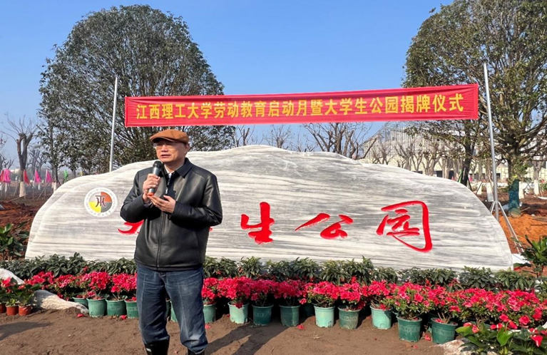 春和景明,万物竞发。311日,在植树节来临之际,江西理工大学劳动教育启动月暨大学生公园揭牌仪式在三江校区东园举行,同步开展师生植树活动。校党委书记刘祖文,中国工程院院士、校长葛世荣等在家校领导、党委常委出席,厦门校友联谊会会长周朝炊、副会长兼秘书长李延鹃等校友代表应邀参加。学校相关职能部门与学院负责人、“一站式”学生社区代表及师生代表共同参与,仪式由校党委副书记徐志峰主持。