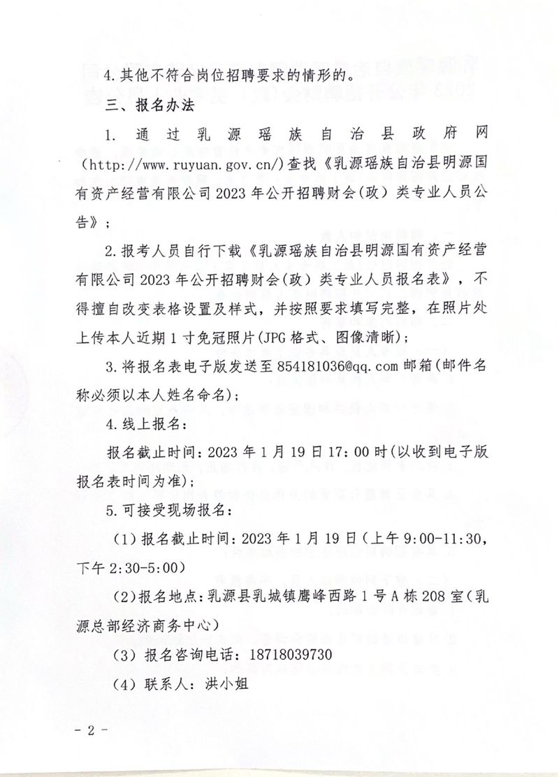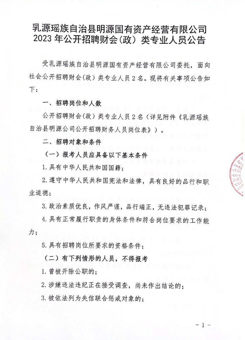乳源瑶族自治县明源国有资产经营有限公司2023年公开招聘财会(政)类专业人员公告