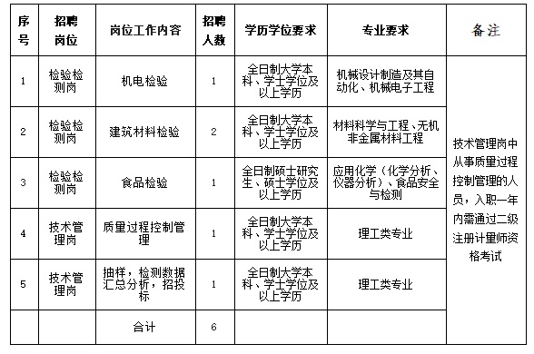为进一步加强本所检验检测技术能力建设,现诚面向2023年度高校毕业生(含学士、硕士、博士)招聘专业技术人员6名,热忱欢迎各位优秀毕业生加盟本所,共谋全面可持续高质量发展!